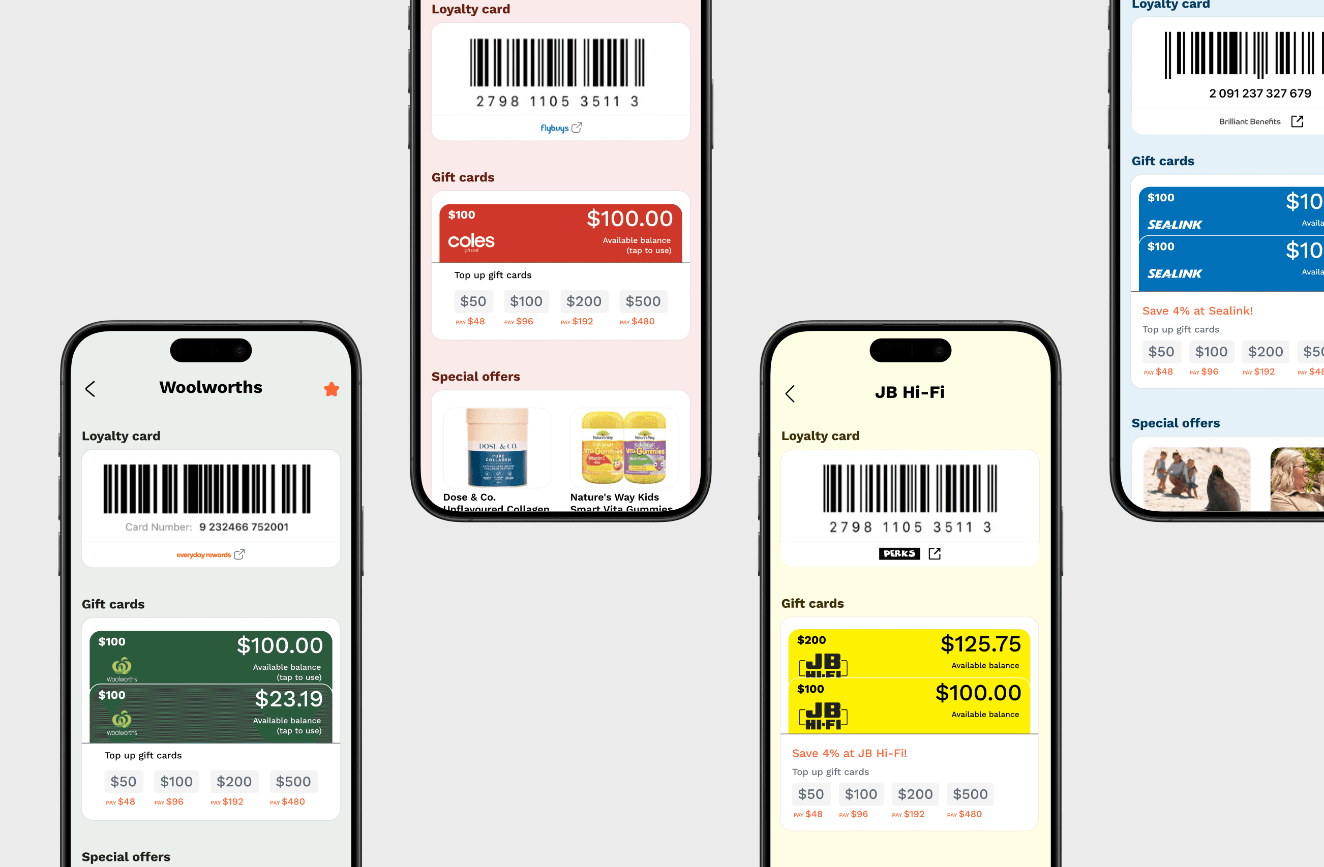 Re‑designed the experience – a truly mobile-first digital wallet experience, revolutionise how to use gift cards on your phone.